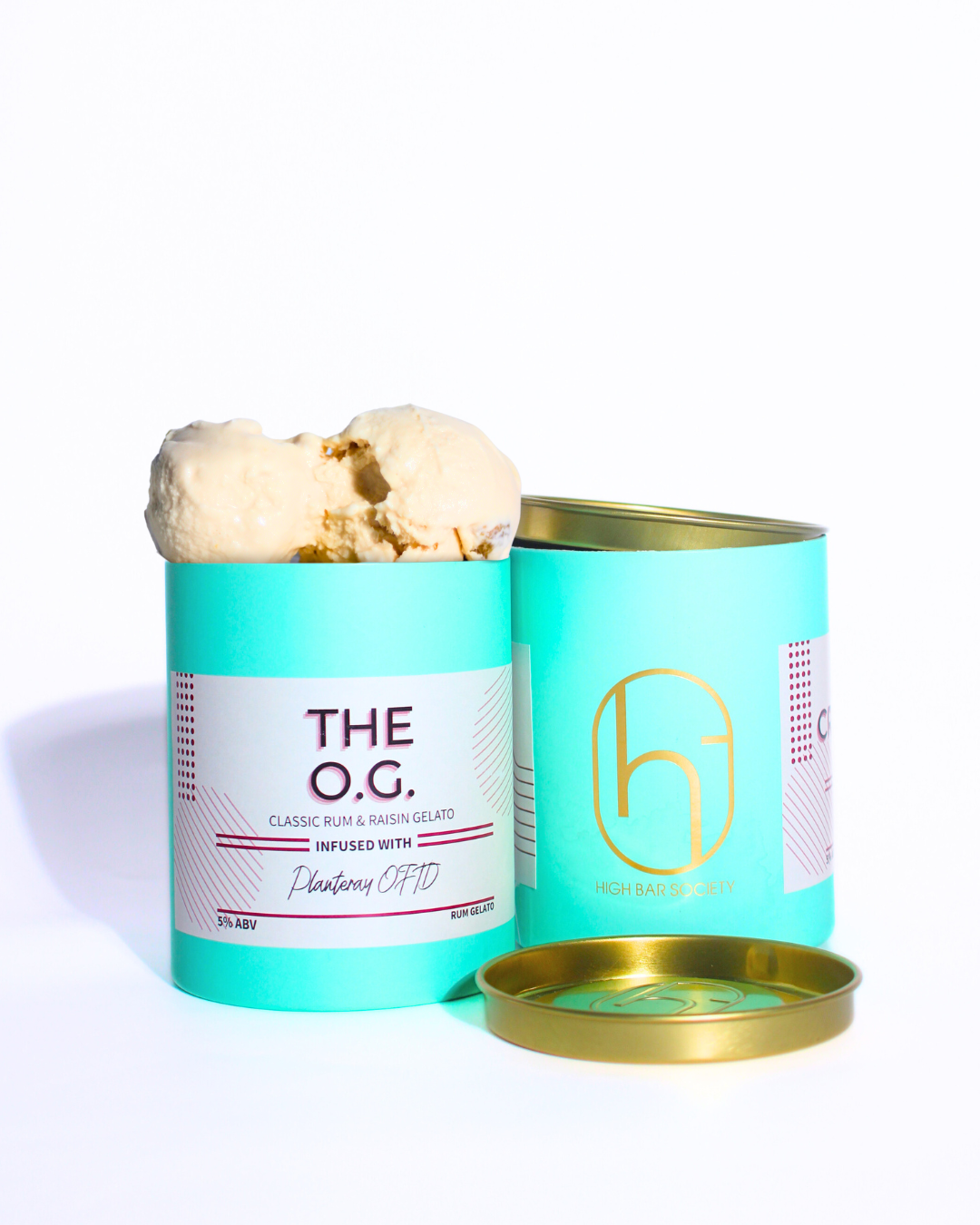 The O.G. is High Bar Society's original and best-selling rum & raisin gelato, featuring Planteray OFTD overproof rum with 5% ABV. This is the flavor that launched Singapore's first boozy gelato bar, using a traditional 48-hour rum-soaking process and premium ingredients to create what many call "Singapore's best rum & raisin gelato."